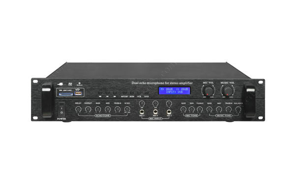 此系列产品是具有音箱处理功能的卡拉OK效果器,每部分功能都独立可调。  用24Bit数据总线双混响;  麦克风自带反馈抑制;  MIC通道四路输入,一路48V幻象电源支持电容麦输入;  内置USB/SD接口,远距离蓝牙接收;  本机设有