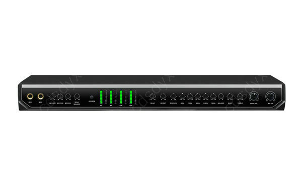 双模式混响处理,是一款高保真的立体声双混响的前级效果器;  超低声道输出,设计带分频点以及输出增益可调;  超低声道具备仿低频自激电路,可防止啸叫损坏设备;  音乐/麦克风各设三段参量均衡调节,调出你想要的声音;  输出有前(